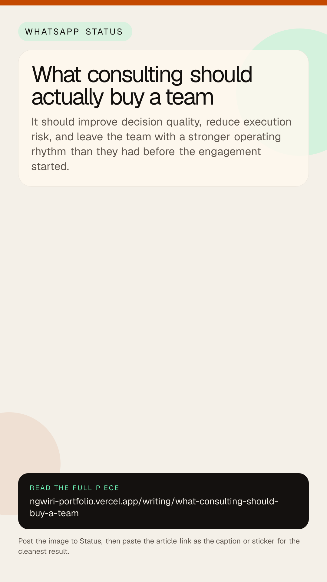 This is why I think consulting should be measured by decision quality as much as delivery volume.